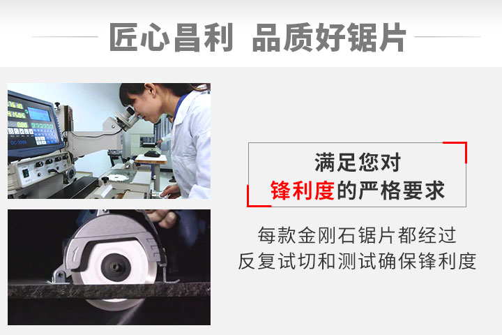 從2010年開始和昌利公司合作5年以來,一直以來對昌利干切王系列鋸片青睞有加,錢老板手下的工人師傅更是對產品有著十足的信任,用于干切各類石材、混凝土等建筑材料、用于外墻鋼掛工程,石材切割等。鋸片鋒利度很好,干切不燒刀、耐磨、性價比高。